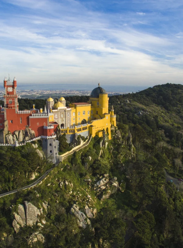 After Fatima, the tour heads to Sintra, a charming city that is a UNESCO World Heritage Site. In Sintra, the main highlight is the Pena Palace, one of Portugal’s most famous castles, standing high on the Sintra Mountain. The palace blends Romantic, Gothic, and Manueline architectural styles, creating a stunning vision that seems straight out of a fairy tale. The palace gardens are equally impressive, with over 2,000 species of plants from around the world, providing a unique experience in the heart of nature.